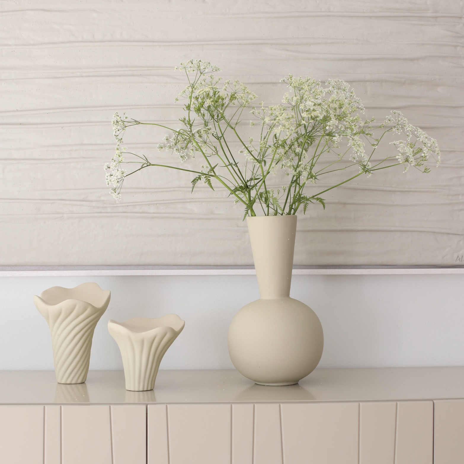 ”Att vandra i naturen och samla grenar, stenar och få intryck av renhet och lugn återspeglas i subtila svampskulpturer. Skulpturerna kretsar kring enkla organiska former. Den pågående dialogen mellan ytorna skapar en känsla av att se morgondagen falla till marken från växternas kanter. Det tidiga ögonblicket när solen inte har gått upp ännu och det magiska lugnet och stillheten som omger oss fångas i bitarna. Skulpturernas nyanser är tagna från marken och den lugnande tonpaletten förbinder oss djupt in i våra rötter; de ger en fläkt av vitalitet inomhus.” – Konstnär Hanna Heino