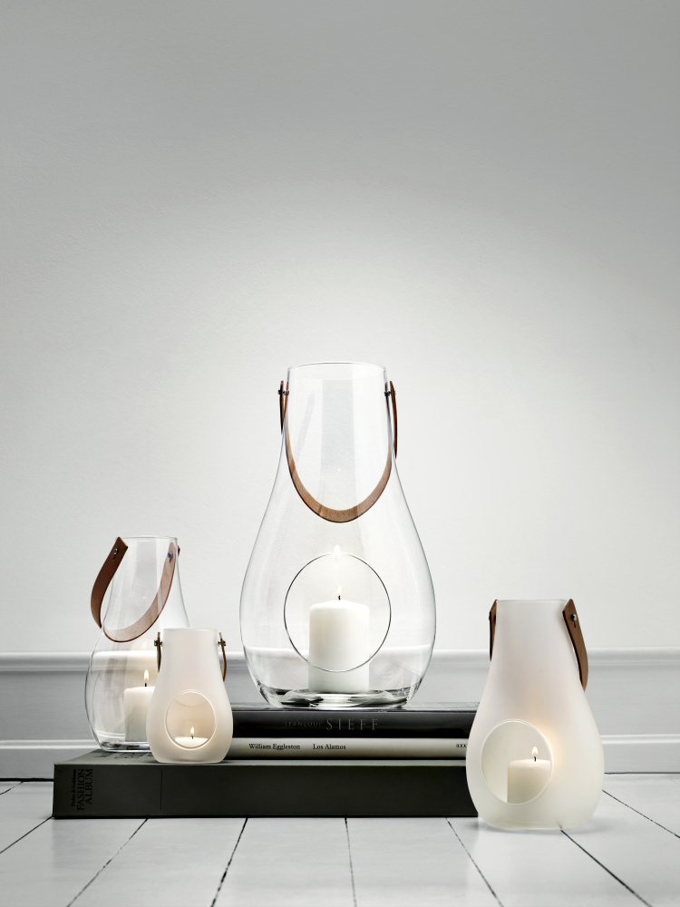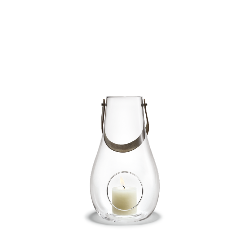 Använd Design With Light-lyktan året runt både ute och inne. Lyktan är perfekt på sommarkvällarna på terrassen eller som dekoration på golv, bord, trappa eller i fönstret. Bara fantasin sätter gränser. Designern Maria Berntsen har skapat den här mobila ljuskällan i klart glas och kärnläder som sprider ljus och trivsel i sann skandinavisk anda. Eftersom glaset är munblåst är varje lykta helt unik. Välj mellan 16,25,29 och 45 cm.