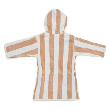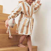 En badrock i frotté är alltid användbar för ditt barn. Morgonrocken är perfekt att använda efter bad, dusch eller simning. Den mjuka frottén absorberar lätt vatten och håller ditt barn varm och torr. Huvan med öron torkar håret lätt. Morgonrocken är också praktisk att ha med sig på semestern eller till en övernattning. Morgonrocken har en behändig tryckknapp för att hålla den stängd när du bär den, resår i ryggen för perfekt passform och bältet fästs i badrocken så att du inte kan tappa den.