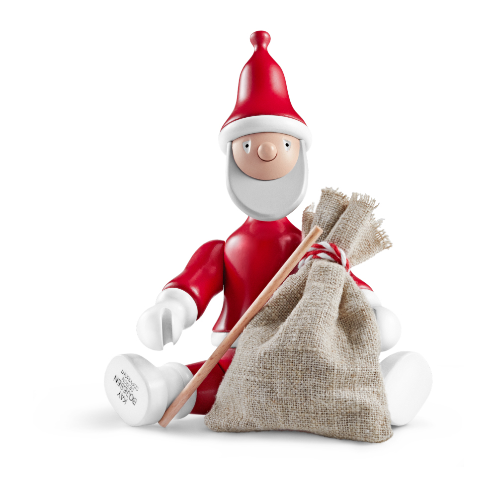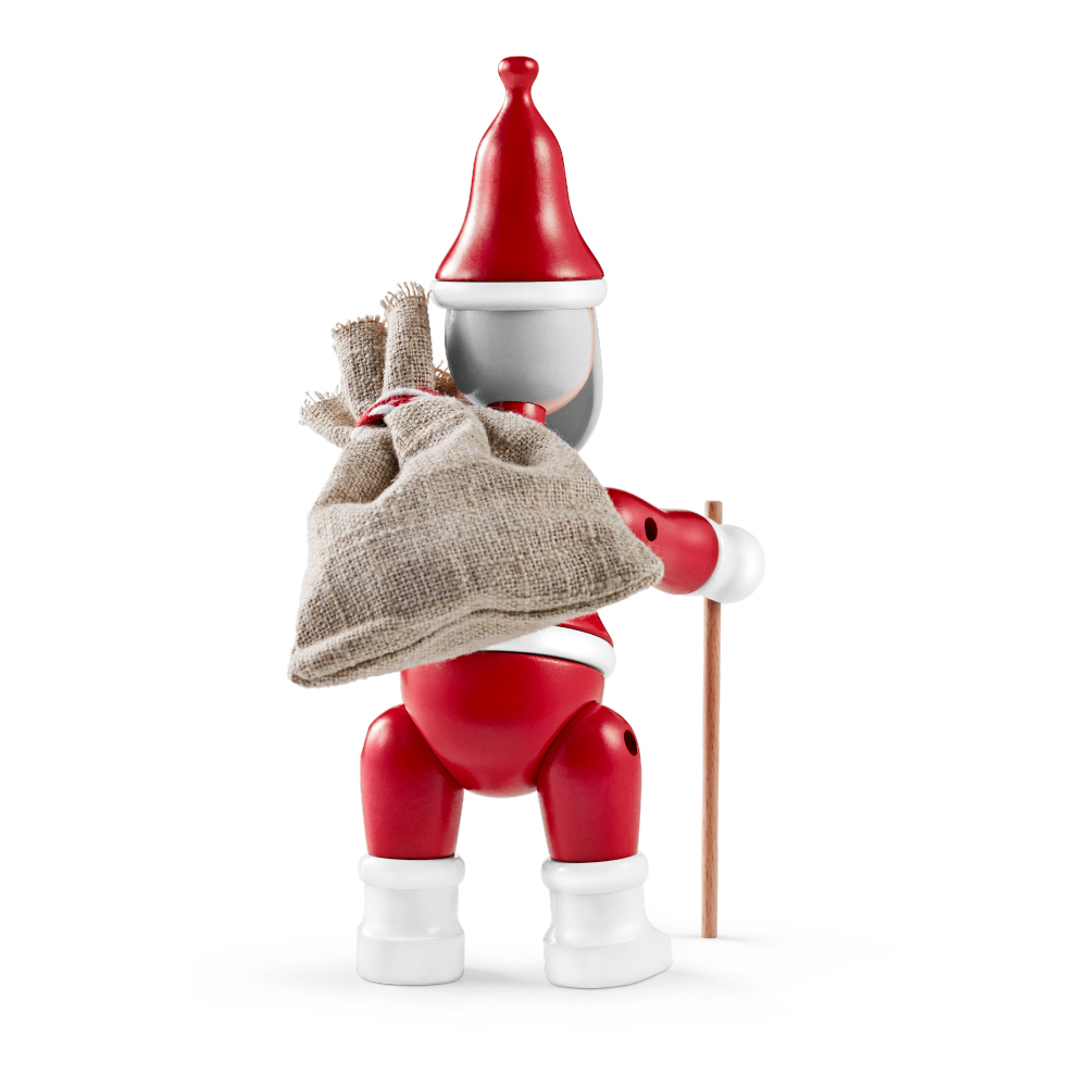 Originaljultomte från 1940-talet ritad av Kay Bojesen. Med säck och käpp blir denna en favorit och ett kärt återseende år efter år när lådan med julpynt plockas fram. Kay Bojesens fantasifulla familj av träfigurer utövar en särskild tjusning på både barn och vuxna. En klassiker och en fin gåva som garanterat kommer att gå i arv i generationer.
