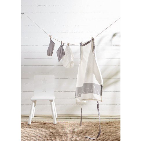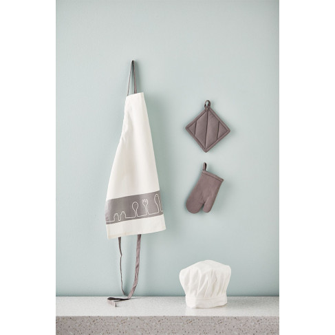 Efterlängtat tillbehör till vårt lekkök! Ett set i med förkläde, kockmössa, grytvante och grytlapp i 100% bomull. Förklädet passar utmärkt för att skydda barnets kläder medan de hjälper till i vuxenköket! Grytvanten och grytlappen är självklara hjälpmedel när kakorna i leksaksugnen är färdigbakade. Lekfullt mönster med Herr Peppar och hans vänner på förklädet.