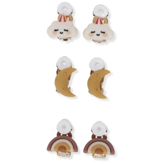 Tre halsband med olika berlocker i polyresin och mässing. Varje halsband har en magnetisk säkerhetsstängning.