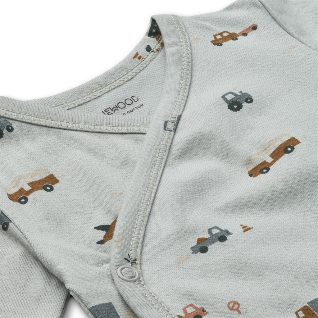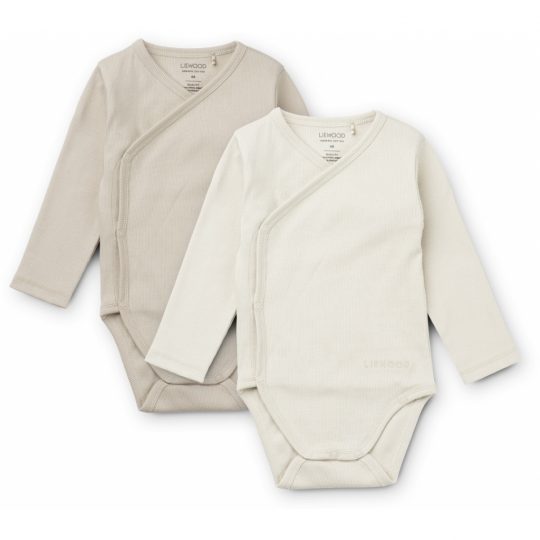 Elastan säkerställer perfekt passform, cross-over stängning för enkel att använda. Stängningen är utrustad med tryckknappar. Långa ärmar i ribbkvalitet, kommer i vackra ränder och enfärgade söta färger. Kommer som ett 2-pack.