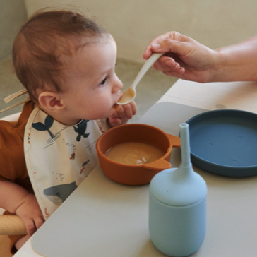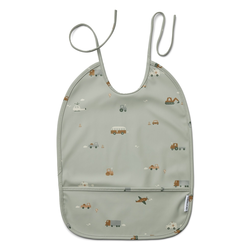 Haklapp som skyddar kläderna på de små barnen. Vattenavvisande och med framficka. Denna är tvättbar i maskin.