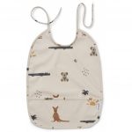 Haklapp som skyddar kläderna på de små barnen. Vattenavvisande och med framficka. Denna är tvättbar i maskin.
