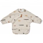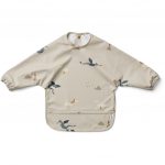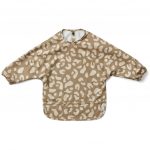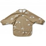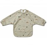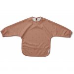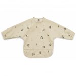 En lättsam haklapp med ärmar som är perfekt för barn som lär sig äta. Det återvunna materialet gör det omedelbart återanvändbart: skölj helt enkelt och torka rent.