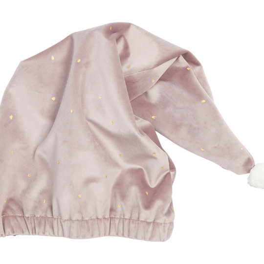 En söt stickad tomteluva. Ribbad nederkant med en söt toffs.