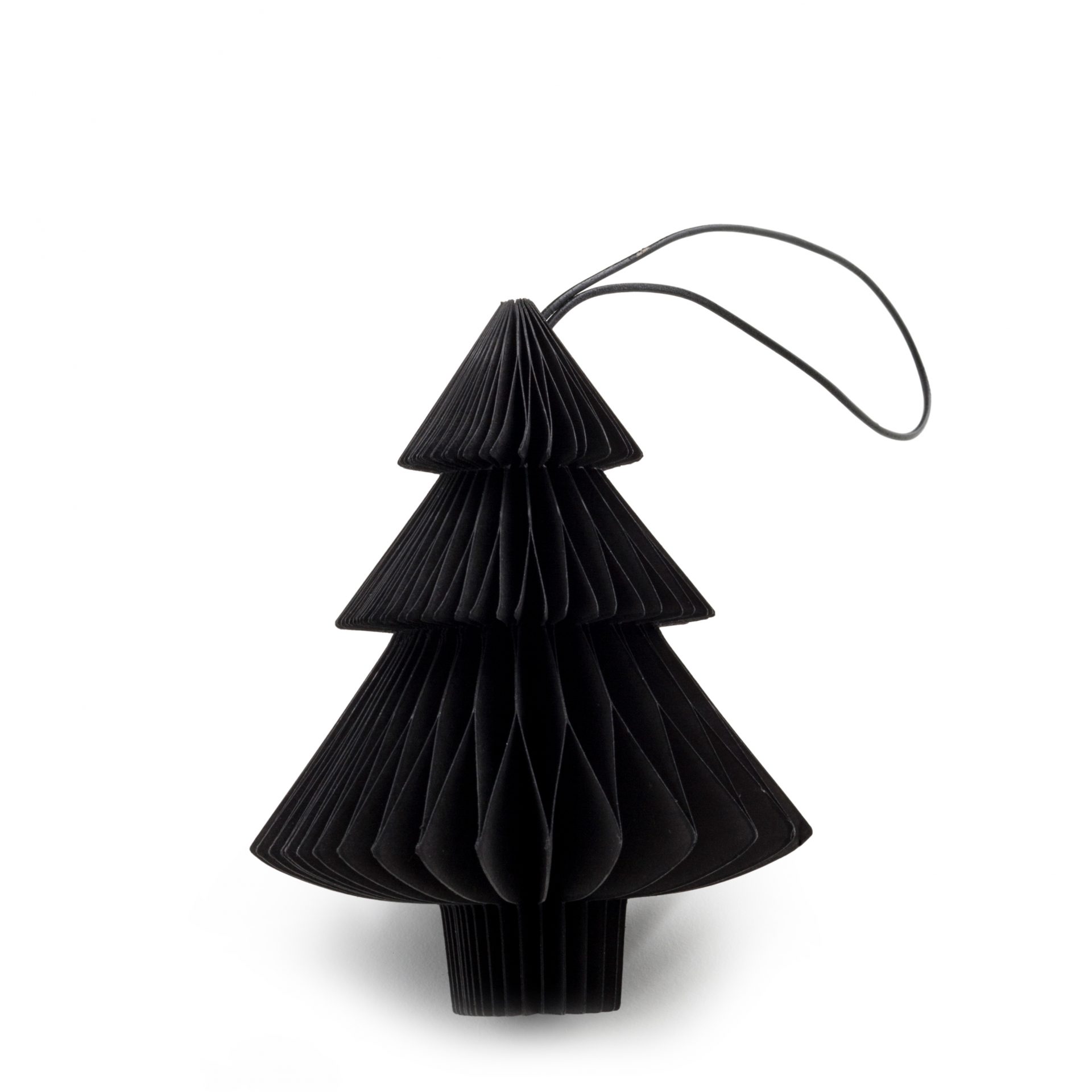 Juldekoration i papper med svart lädersträng – magnetisk stängning, storlek: 9 – 10 cm.