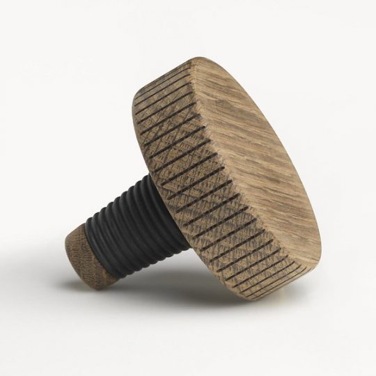 För vinrester, oljor och andra flaskor. Tillverkad av massiv ek.