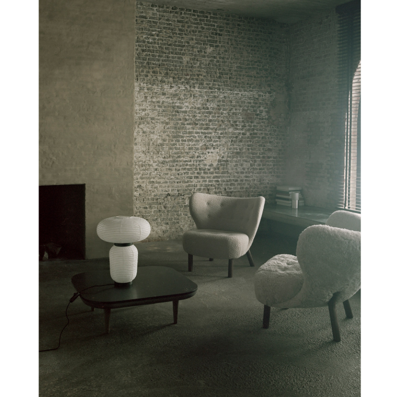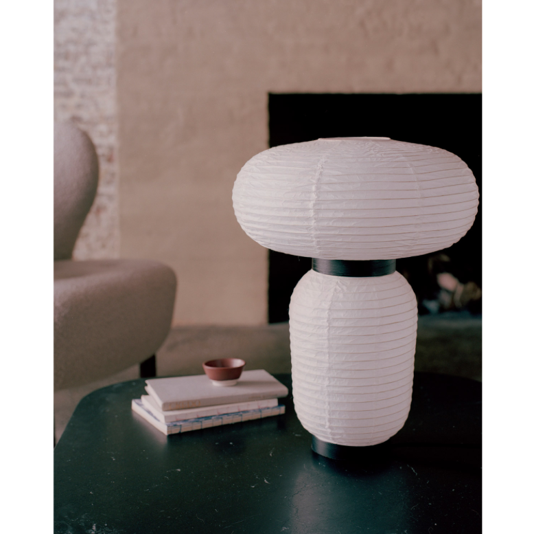 Formakami bordslampa JH18 från &Tradition, formgiven Jaime Hayon. En handgjord papperslanterna i unik design inspirerad av den traditionella asiatiska rislampan. Lampan har två ljuskällor, en i övre delen och en i nedre vilket sprider ett mjukt ljus på ett elegant sätt. Lampan är tillverkad i svartbetsad ek med svart textilsladd. Var varsam vid uppackning.