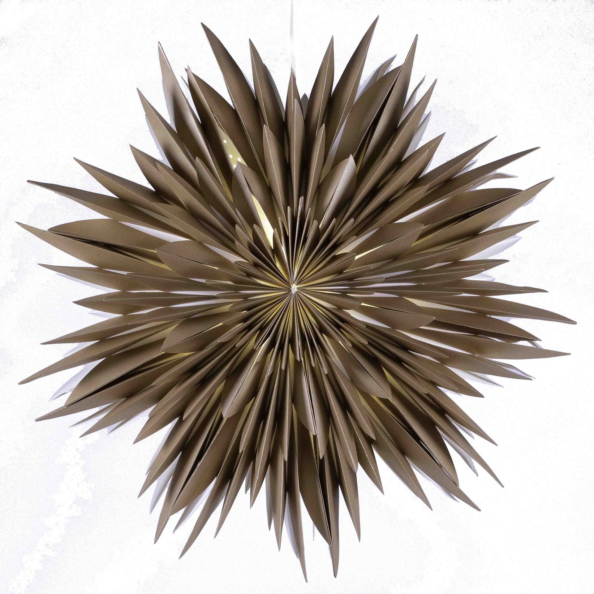 Maja 60 guld är en pappersstjärna som har tagits fram som en fusion av Eldig och Snöblomma. Den är stark och tar plats, kanske precis som personligheten hos den som köper Maja. Det kraftiga papperet ger stjärnan sitt tydliga uttryck.