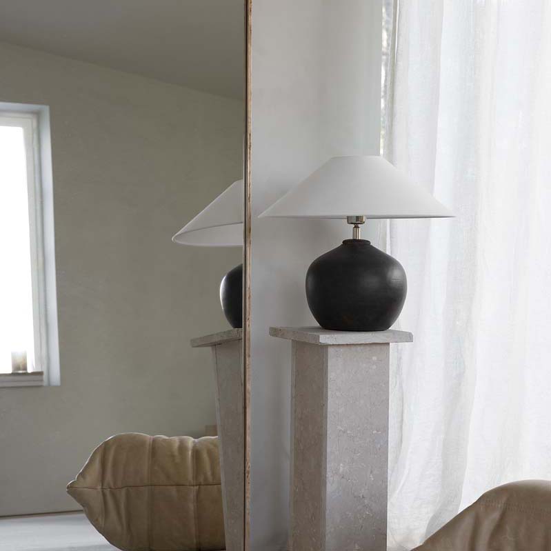 Mona är vid första anblick en vanlig, rund bordslampa, i en trendig och vacker design. Men terracottamaterialet, de små variationerna i formen och inte minst dess finish skvallrar om hantverket som ligger bakom. För oss är det charmen och vad som gör denna bordslampa unik i varje hem.