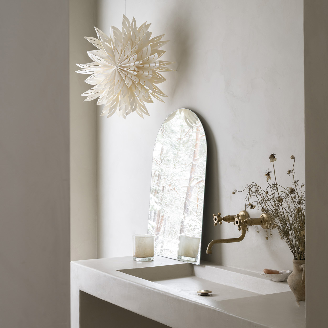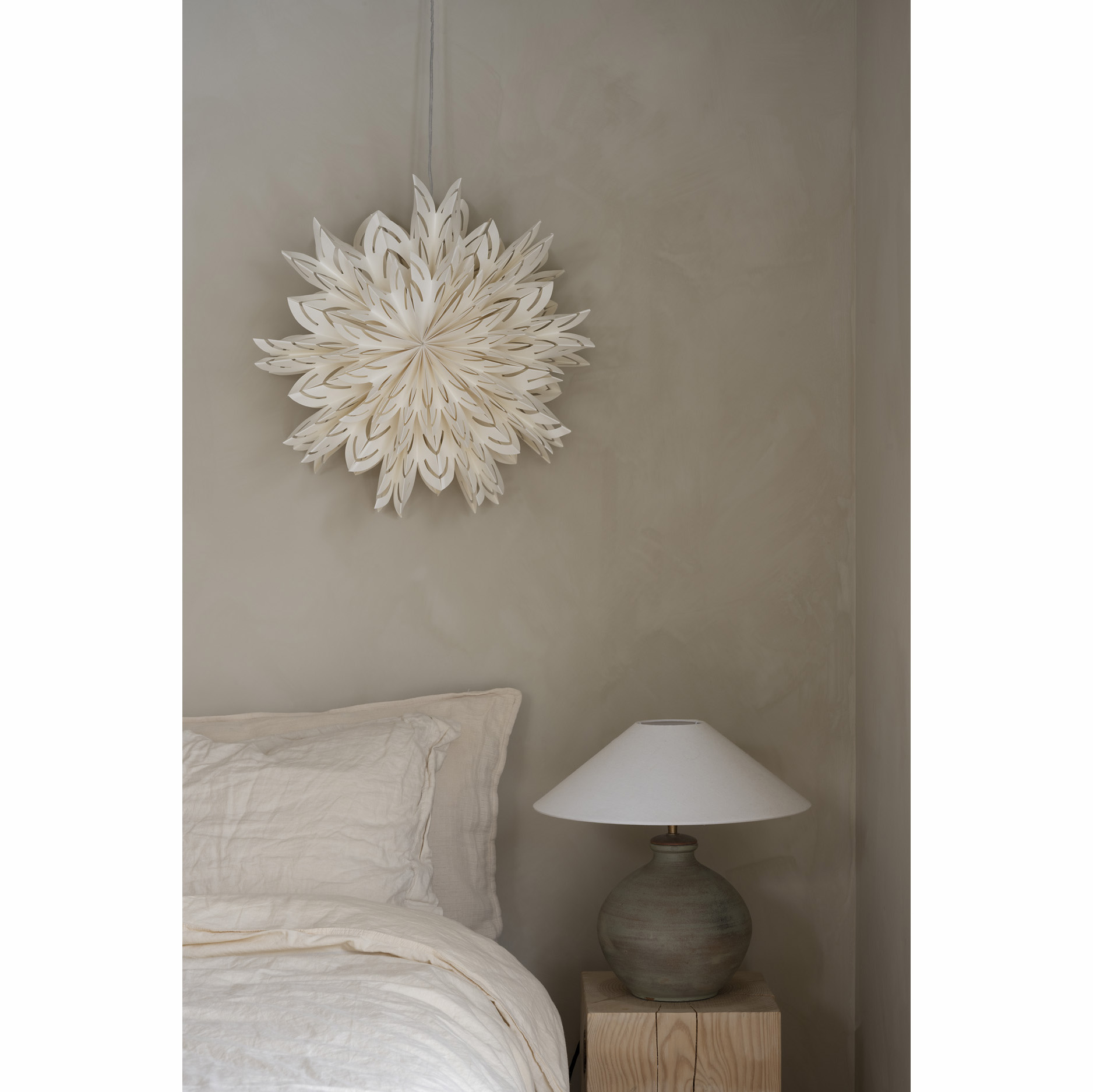 Siv 60 vit är en elegant vit stjärna som sprider ljus och glädje i juletid. Vikningen på pappersstjärnan, i kombination med papperets mönster, gör att Siv 60 vit tillför rummet liv oavsett tänd eller släckt. Kommer i en vit elegant låda för säker försvaring eller att använda som presentask och gåva till värden på julminglet eller som julklapp till den som uppskattar design.