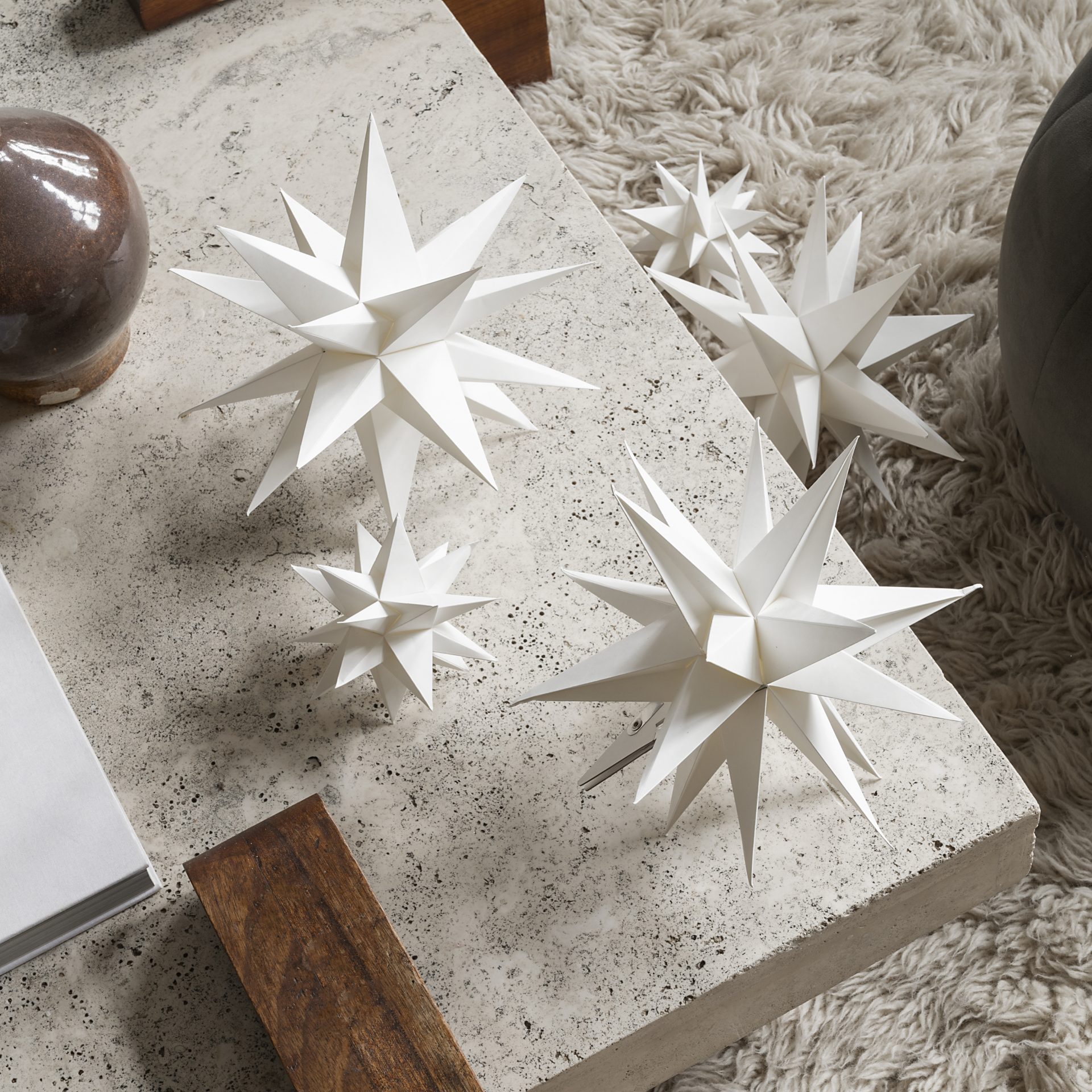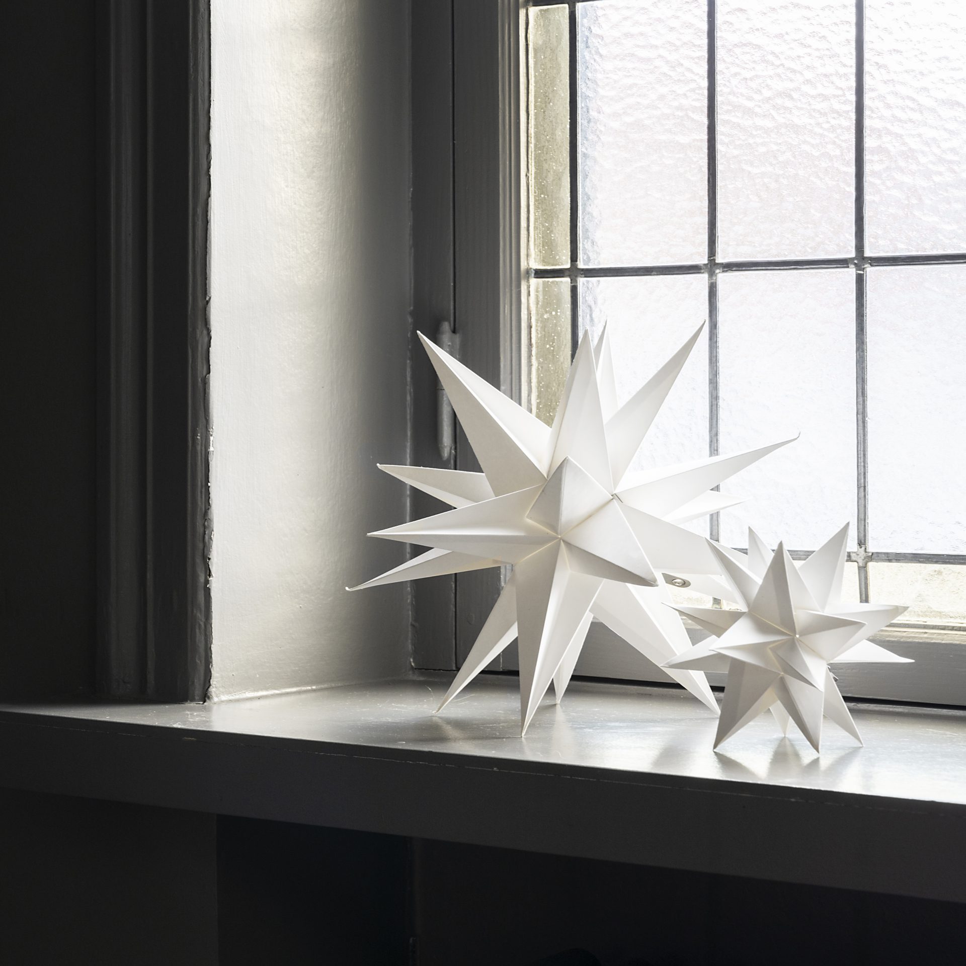 Kombinera flera Sputnikstjärnor i olika storlekar och skapa ett regn av tredimensionella pappersstjärnor. Sputnik är vikt för hand och tillverkas av återvunnet vitt, matt papper.