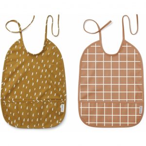 Lai Bib Print 2-pack Check/Graphic Stroke Golden Caramel Mix