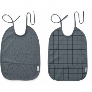 Lai Bib Print 2-pack Check/Graphic Stroke Whale Blue Mix